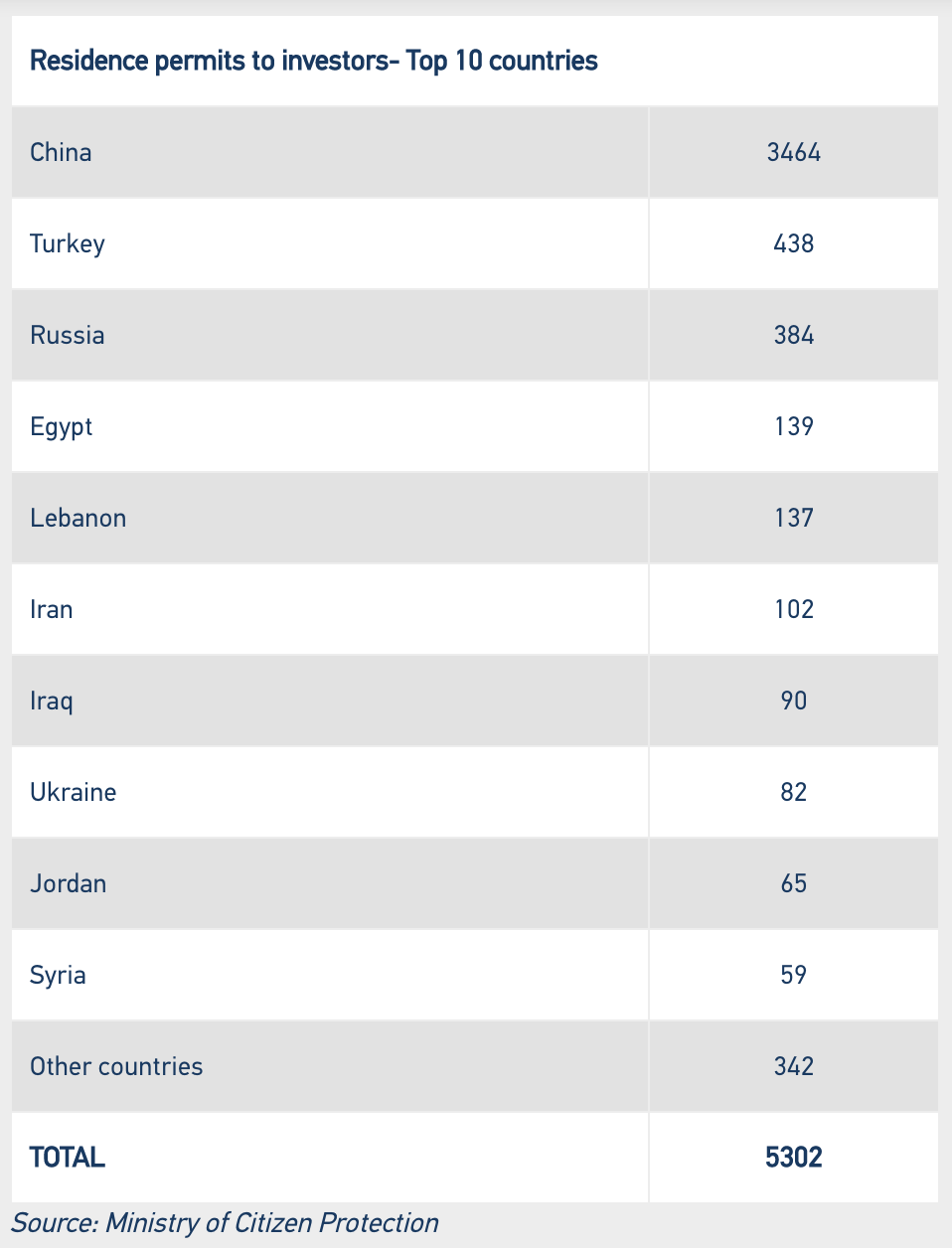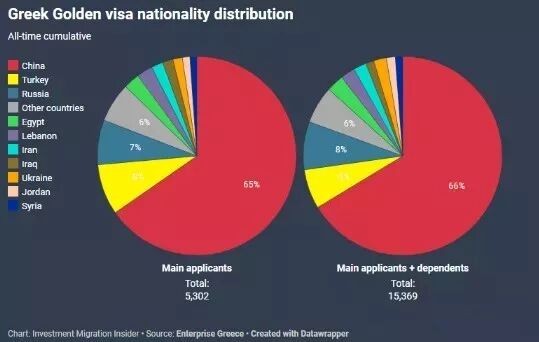 中国主申请人所持有的居留许可数量3季度增长了697份,自2013年以来,来自中国的黄金签证持有人数为3464份,占希腊黄金签证总数的65%。