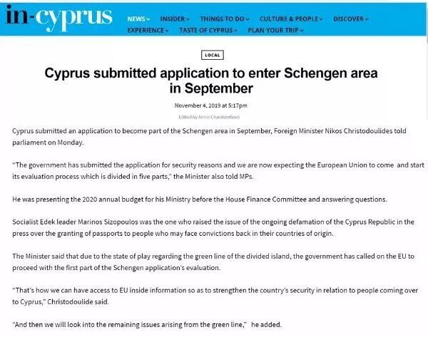 2019年11月4日《塞浦路斯邮报》报道:
