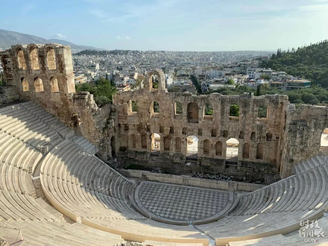 △希罗德·阿提库音乐厅,建于公元161年,罗马剧场样式,可容纳5000人,至今仍可用于演出。(央视记者石丞拍摄)