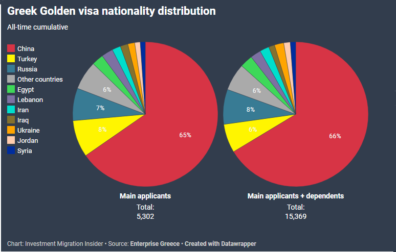 希腊已经吸引了大批中国投资人,在9月30日公布的最新的希腊“黄金签证/Golden Visa”统计数据中,截至2019年9月,在已经发放的5,302张主申请人永久居留许可中,中国申请人所获签证的占比超过65%,为3,464份。