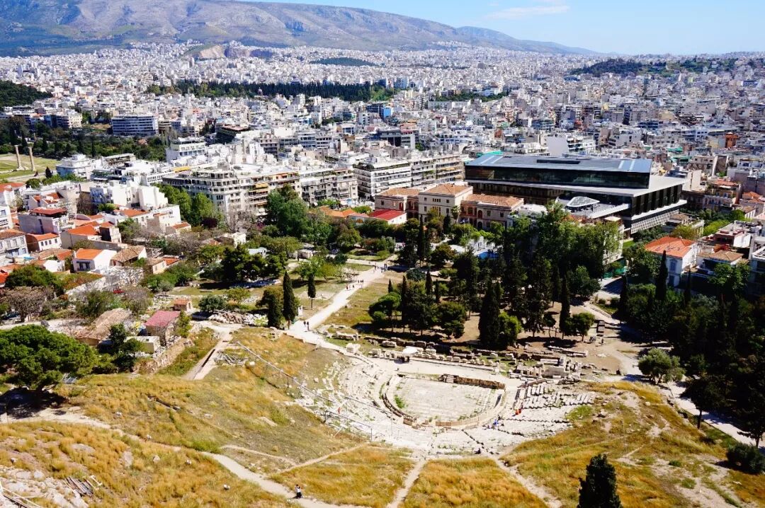 更为神奇的是,在走廊里还可以透过玻璃360度欣赏300米远的帕特农神庙以及雅典全城风貌!