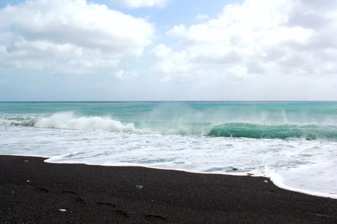火山岛上还有两大特色景点:由火山熔岩形成的奇特的红色海滩,以及由独特的火山地质造就的黑海滩:火山岩、火山灰的沉积混着白沙,看起来沙是黑的,水看起来也是黑的,但海水清凉、干净,兼具美容作用。