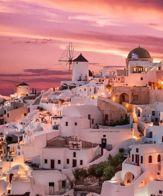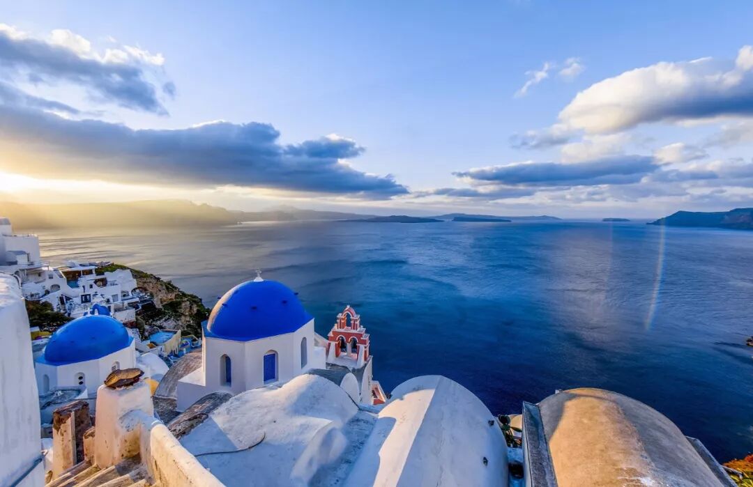 在圣托里尼岛,不仅可以捕捉爱琴海特有的白色小教堂配上蓝天碧海的绝佳画面,还能在西边的伊亚看到颇有名的“爱琴海日落”。