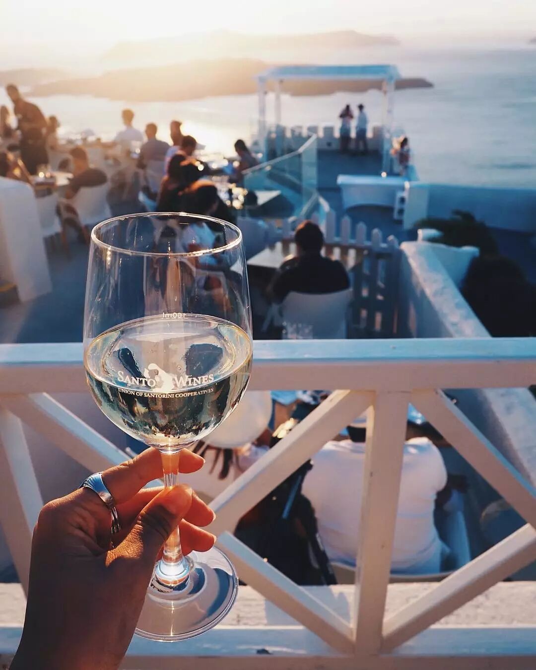 落日西沉时分,坐在临崖而建的圣岛酒庄(Santowines),杯中佳酿,在夕阳下酝酿微醺的醉意。