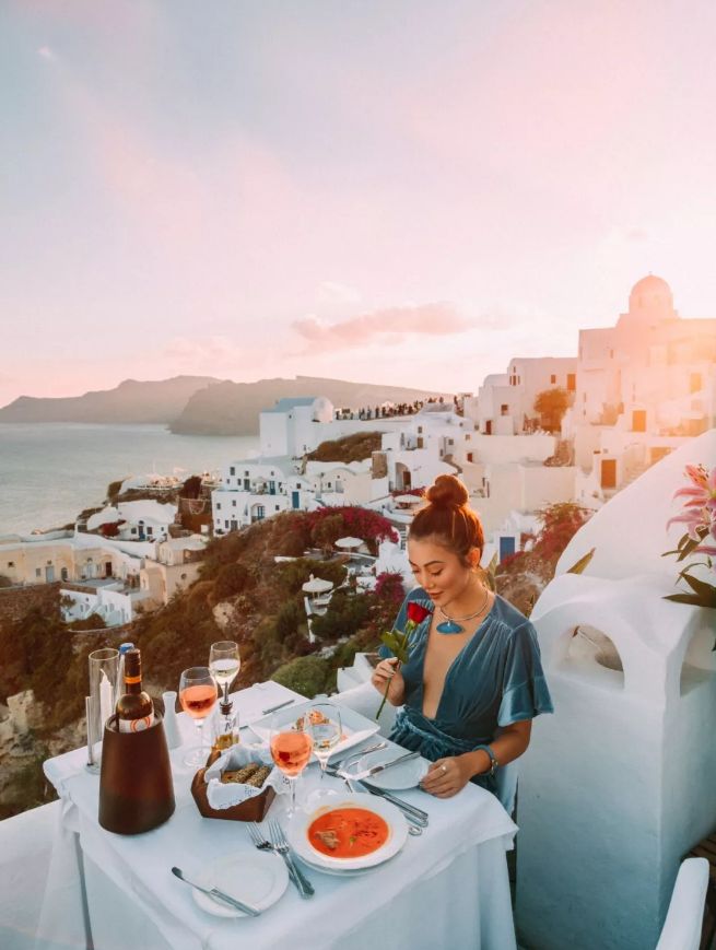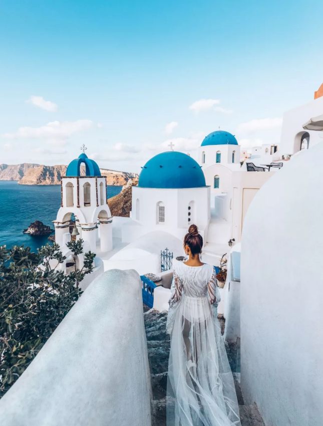 古老的建筑很慢,深蓝的海水很慢,日出日落很慢,葡萄酒很慢,你走在蓝白色的画面里,很慢。